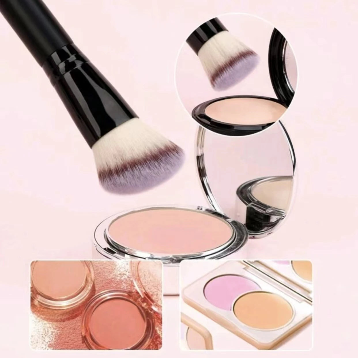 Utilisez le côté large pour appliquer le fond de teint ou la poudre, et le côté biseauté pour sculpter les contours ou déposer le blush. Nettoyez régulièrement pour préserver la douceur des poils.